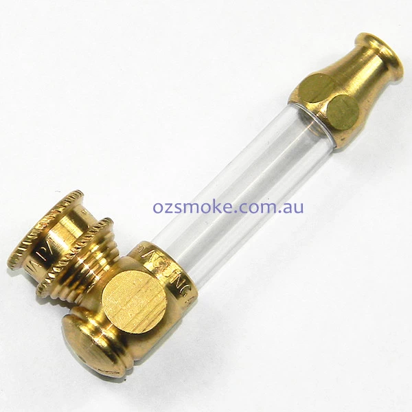 6.5cm long see through pipe from Agung. Brass mouth piece and end with acrylic see through tube. Can be separated to 4 pieces for cleaning.