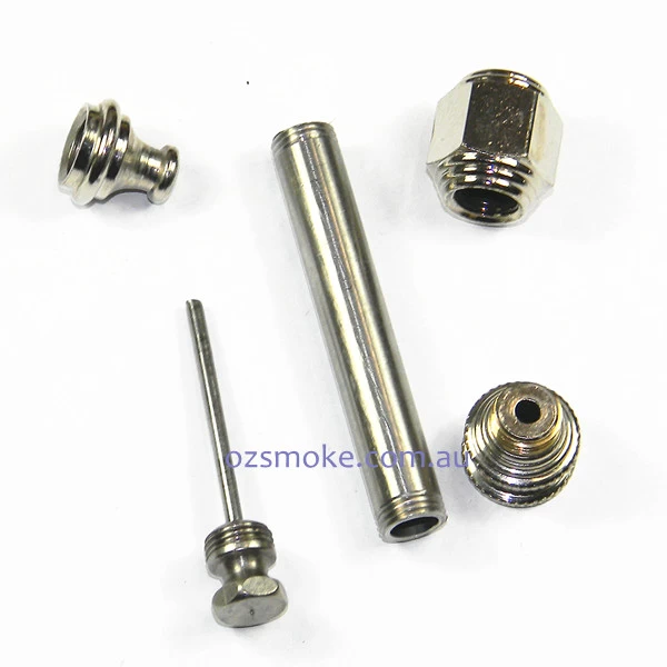Nickel spike pipe measuring 9.5cm from Agung. Pulls apart into 5 pieces for easy cleaning and includes the spike to assist with cleaning.