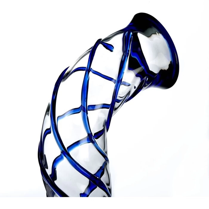 New pyrex bong from Agung. Small 20cm tall glass bong with blue twist design and blue ring on mouth-piece.