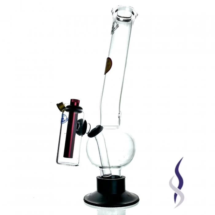 One of Agung’s flag ship models is the XL bent bonza. A large bong made from heavy and tough pyrex glass, standing at 40cm high with a nice size bubble and long neck. This model comes complete with an Agung barrel style second chamber.