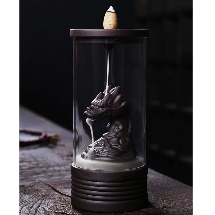 Clay Chinese Dragon Decor Backflow Incense Burner