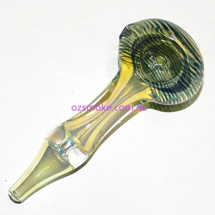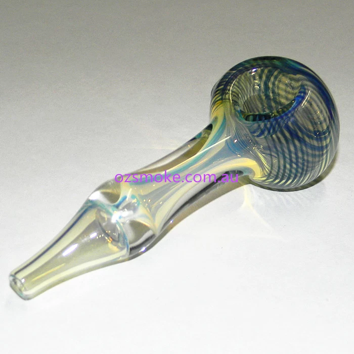 Very cool looking glass pipe. Handmade, so colour and size can vary slightly on delivery.