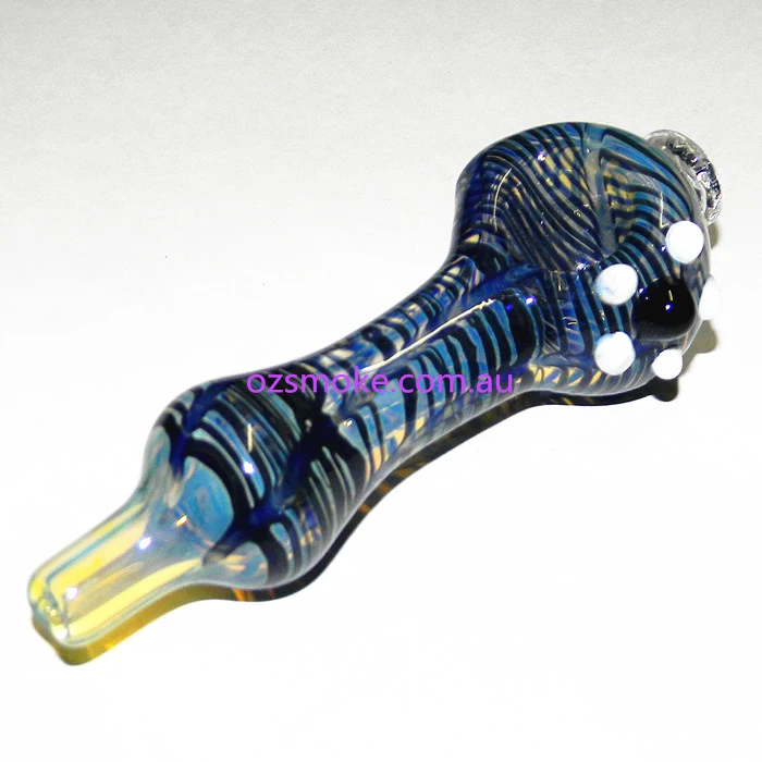 Very cool looking glass pipe. Handmade, so colour and size can vary on delivery.