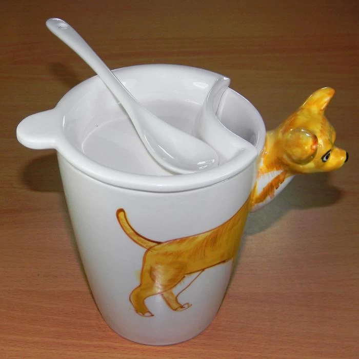 Hand Paint 3D Coffee Tea Mug Chihuahua Dog With Lid Spoon