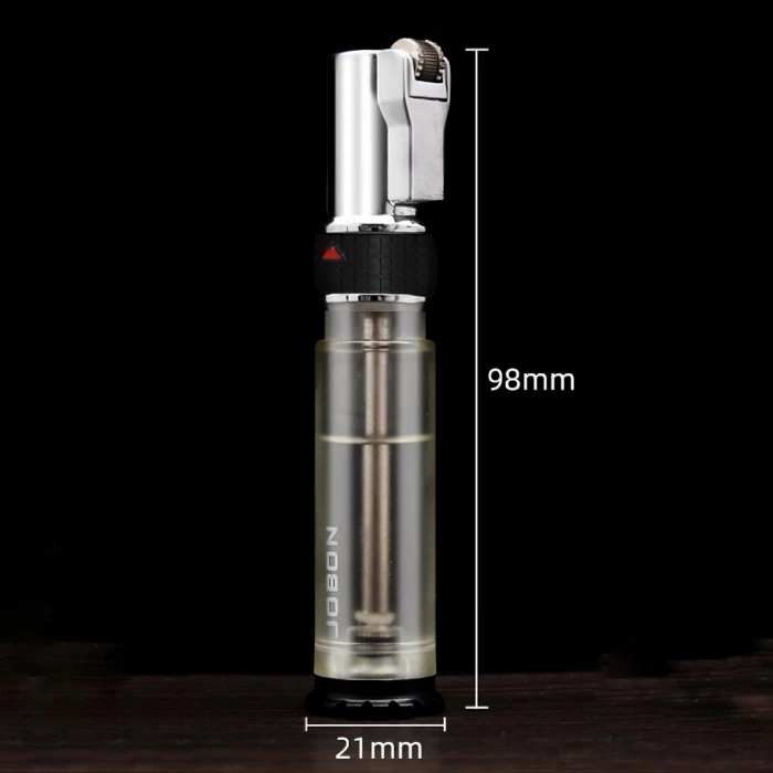 Sleek and functional, the Jobon Transparent Body Jet Flame Lighter offers reliability in a size of 98 x 18mm and a weight of 43g. Its transparent body lets you monitor the gas level. Featuring a jet flame, flint ignition, and a flame adjuster, it’s windproof, refillable with butane, and includes a gift box with two extra flints.