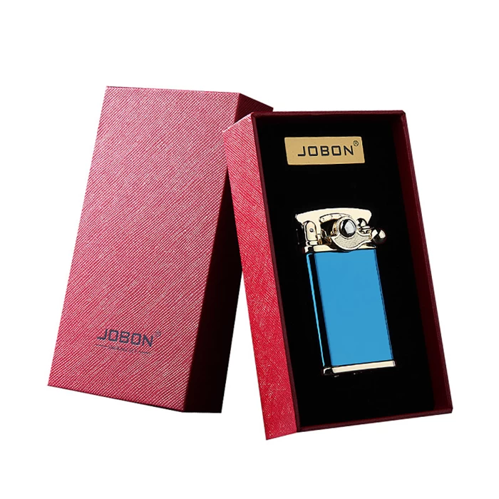 Jobon’s new classic style Jet Lighter. One trigger for both opening lid and igniting. Windproof, Refillable