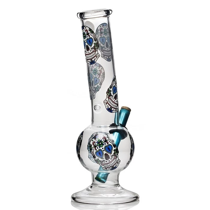Clear and translucent bong with printed Candy Skull designs throughout the bong