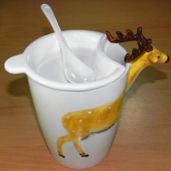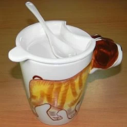 Hand Paint 3D Coffee Tea Mug Border Collie Dog With Lid Spoon