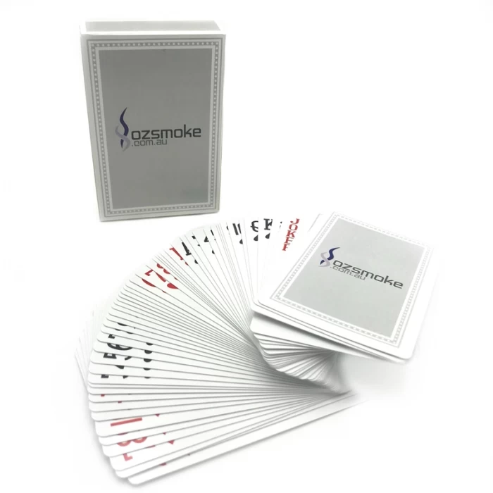 Standard poker playing cards (54 cards per box). With OzSmoke logo printed on the back of each card.