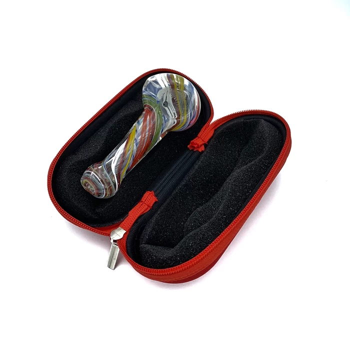 This glass pipe case has a soft form pad inside, a hard surface outside, and a zip-lock for easy opening and closing. Perfect for carrying and storing your fragile glass pipes.