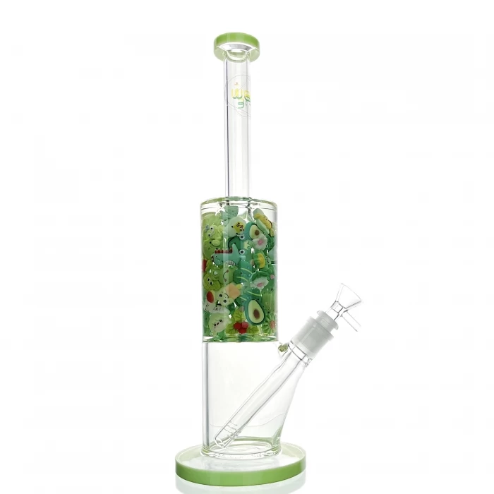 The Mixed Green full glass bong stands at 33cm. It comes with a glass cone and a glass stem for a complete setup and features a beautiful jade colour mouthpiece and bottom rim. Inside, discover added fun with soft mixed green mini toys.